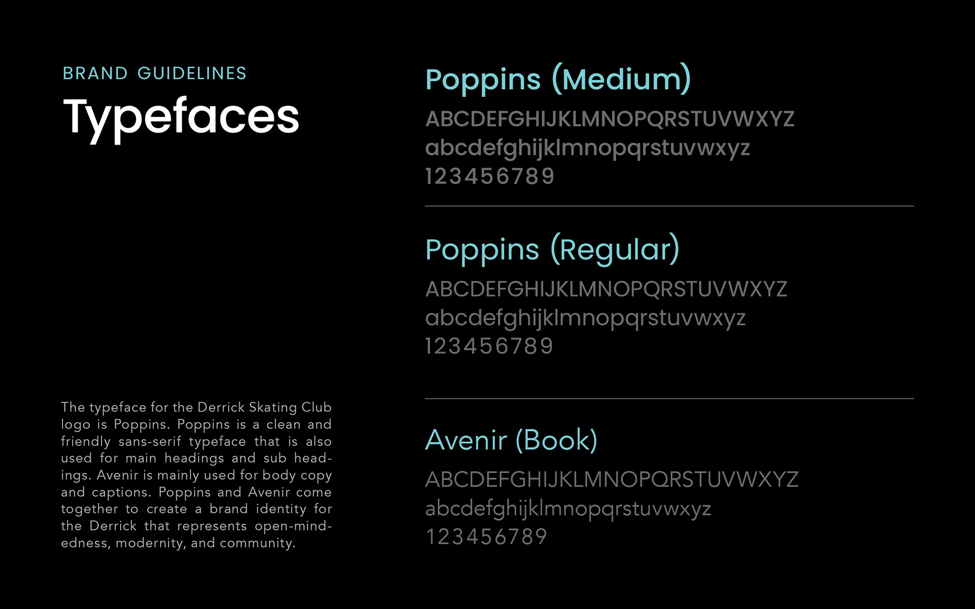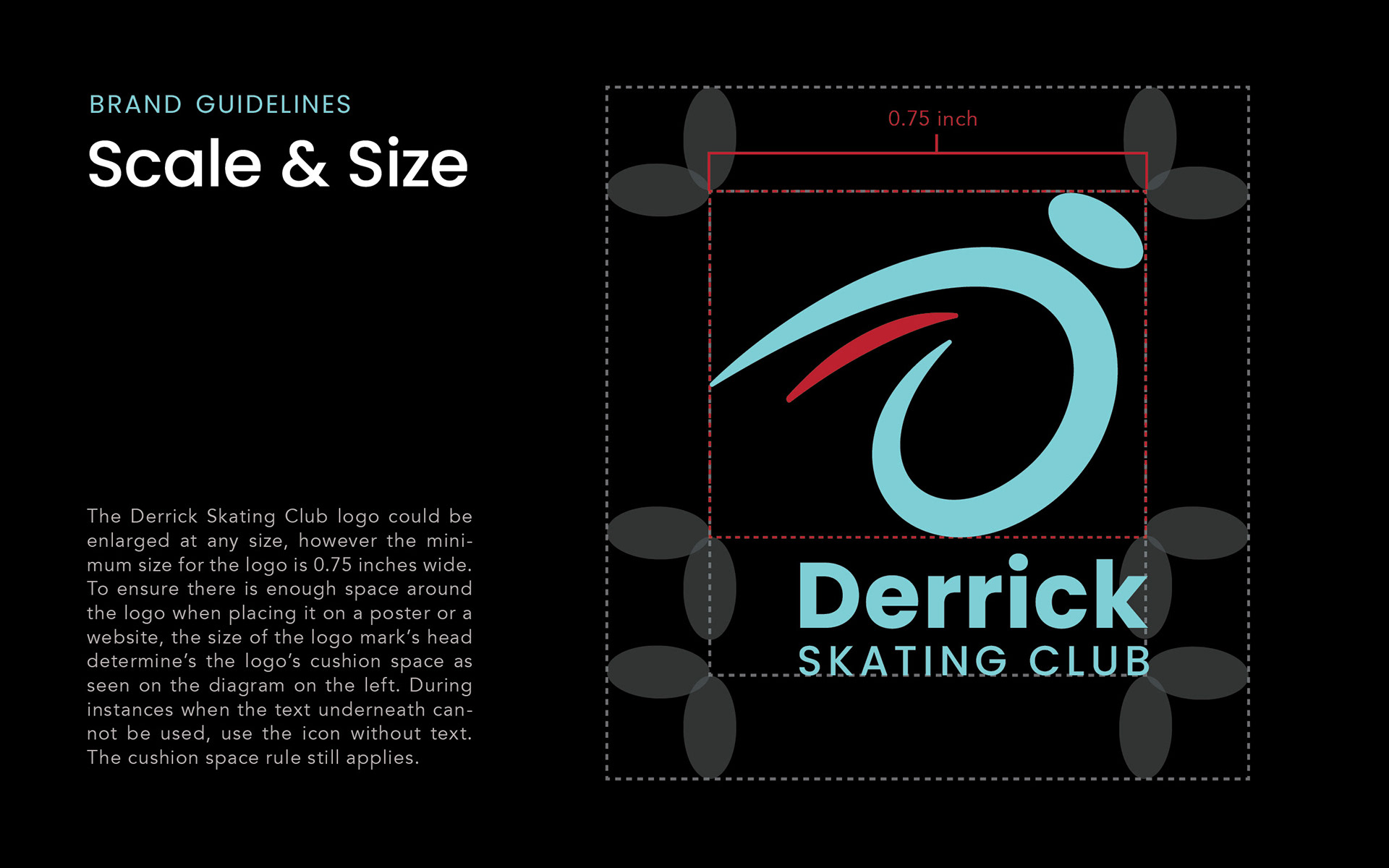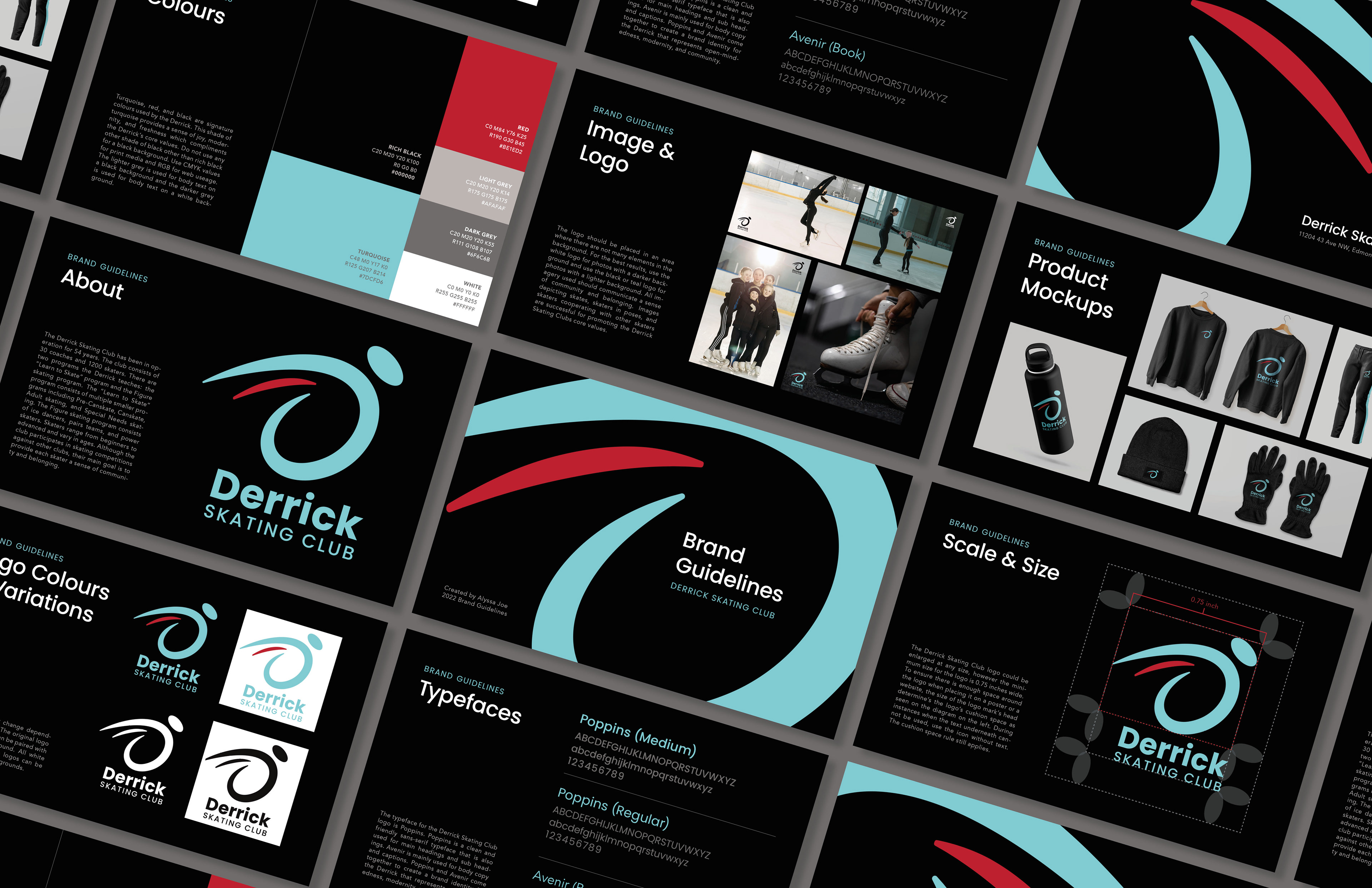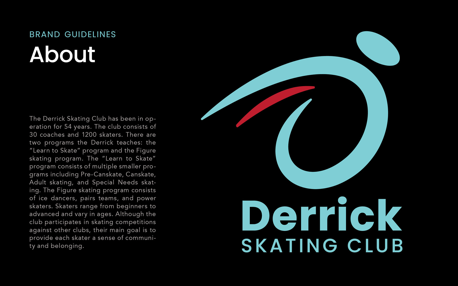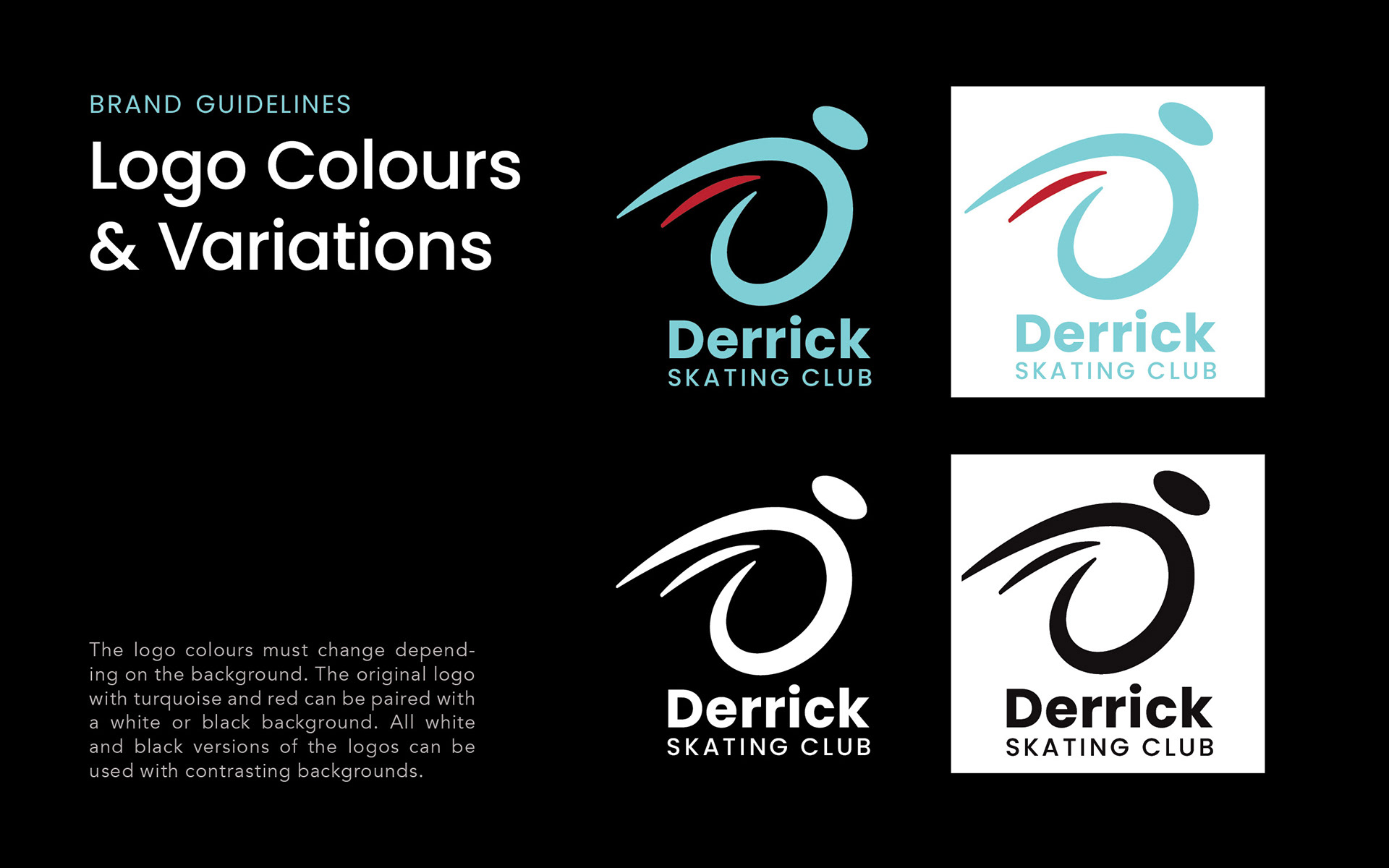 This is a redesigned conceptual brand identity and logo for the Derrick Skating Club, a figure skating club located in Edmonton.